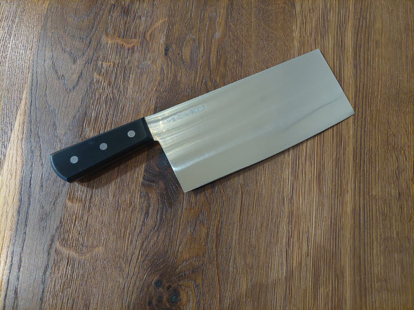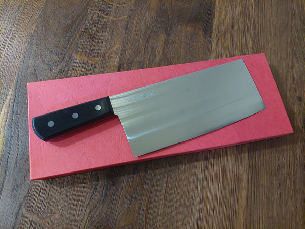 Flottur handsmíðaður Chuka Bocho frá Sakai Takayuki! Hannaður eftir hinum klassíska kínverska kokkahníf en smíðaður í Japan úr japönsku gæða AUS 8 ryðfríu stáli sem heldur biti vel og handfangið er úr fallegum pakka við.
